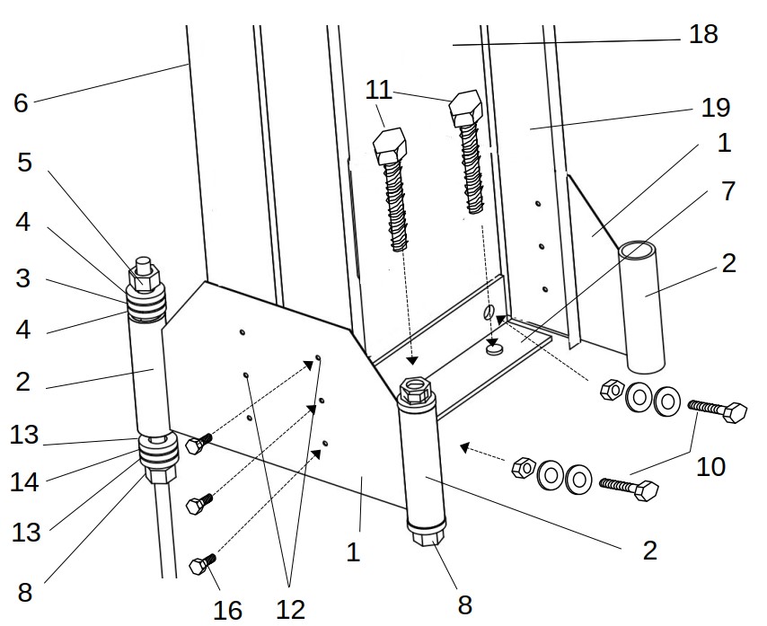 The specimens were assembled in laboratory and subject to a repeated mechanical loading. Various arrangements have been tested, including material of dampers between heavy washers. We have tested the whole range of geometry arrangements to check the limits of the application.Â